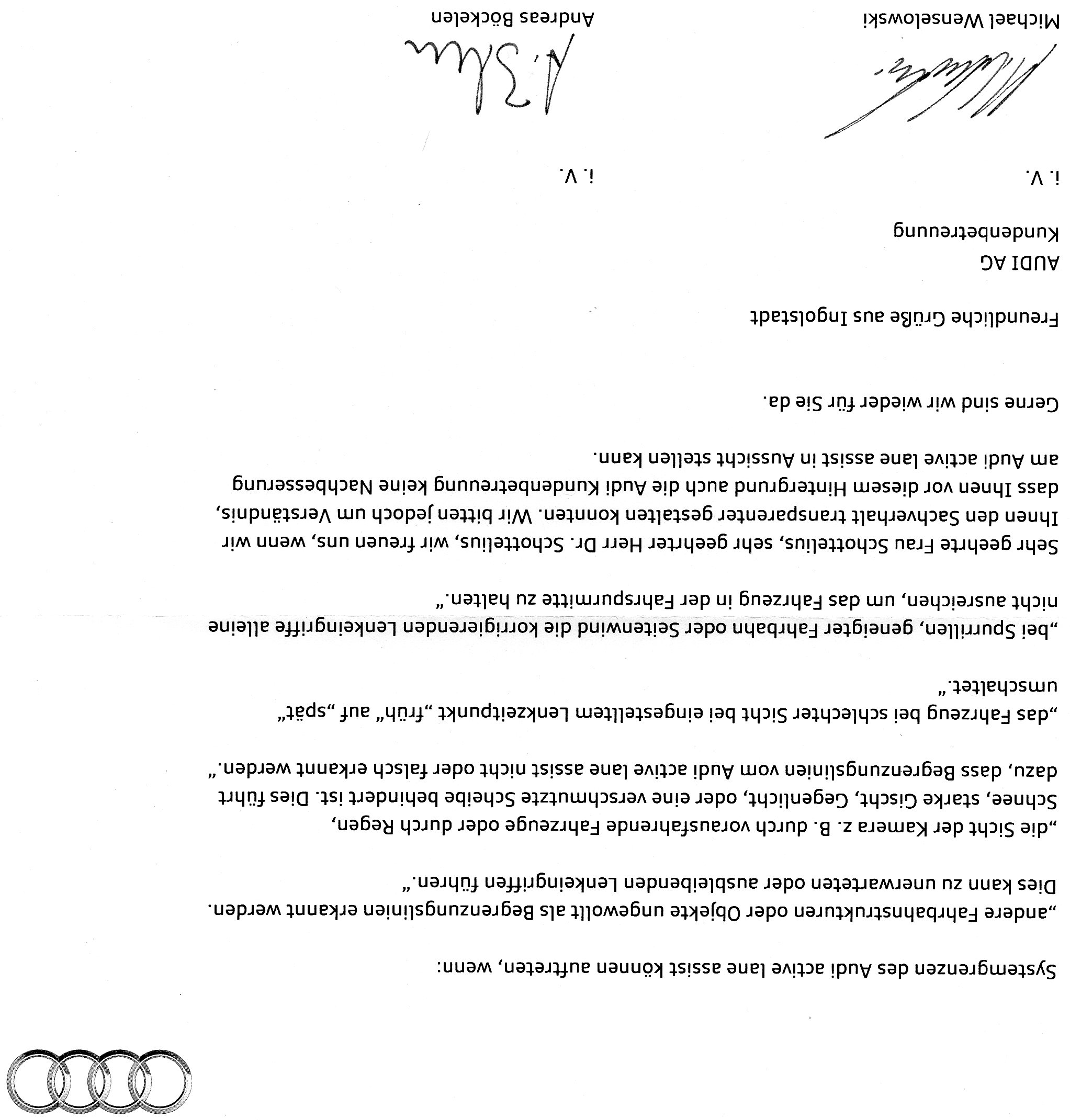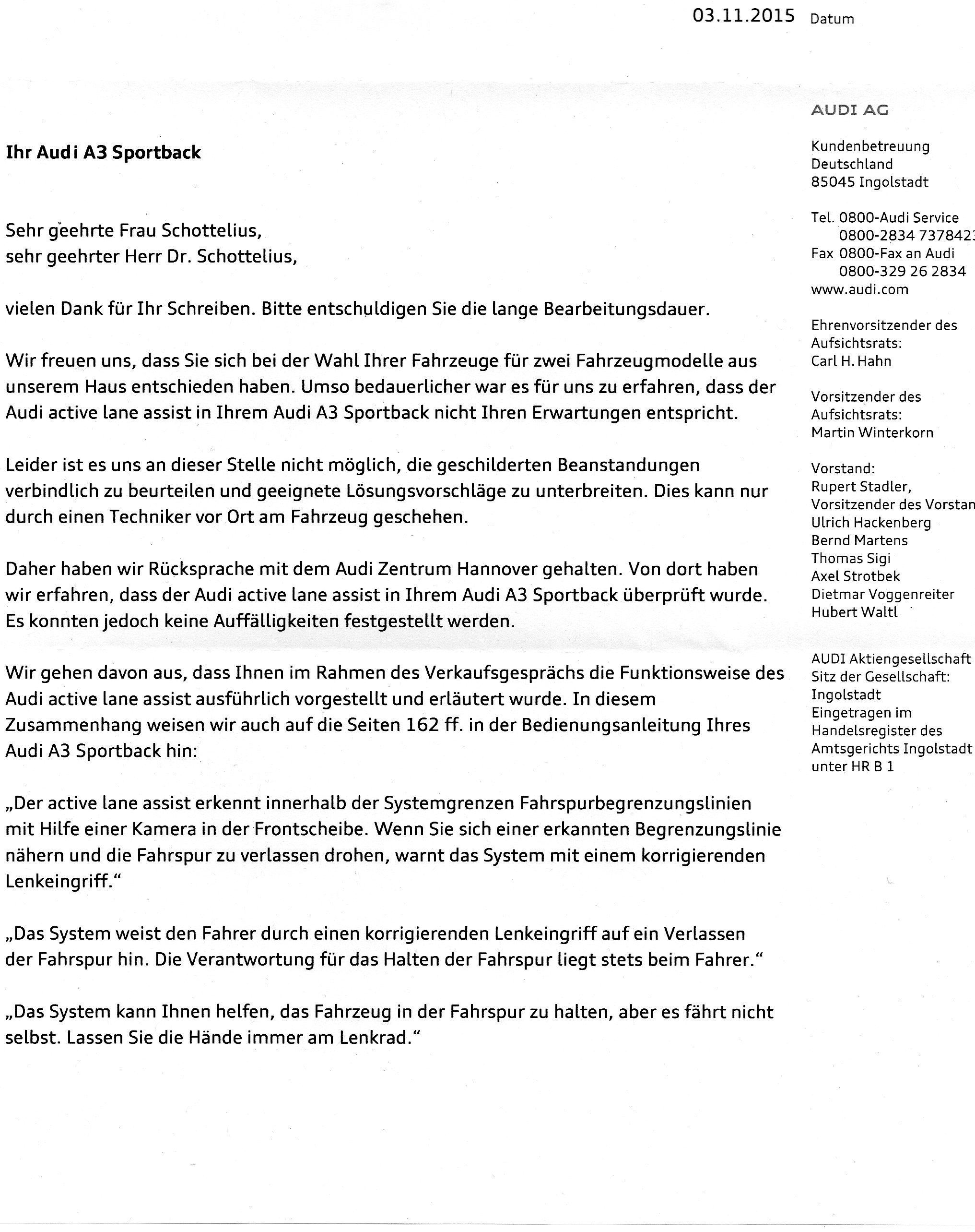 Hier ist der Schriftwechsel mit Audi:
